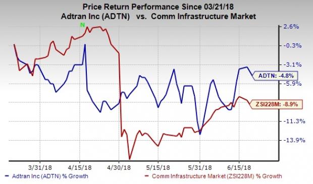 Over the past three months, ADTRAN’s shares have outperformed the industry with an average loss of 4.8% compared with 8.9% decline for the latter.