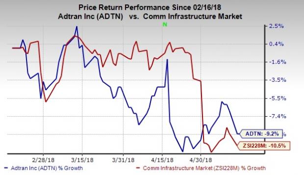 ADTRAN continues to collaborate with its peers to introduce new products and services. Over the past three months, the stock has outperformed the industry with an average loss of 9.2% compared with a decline of 10.5% for the latter.