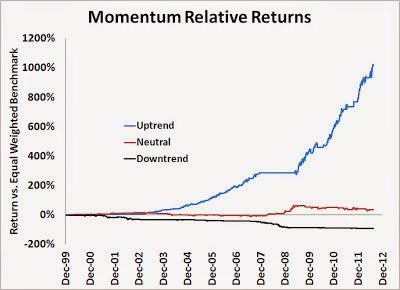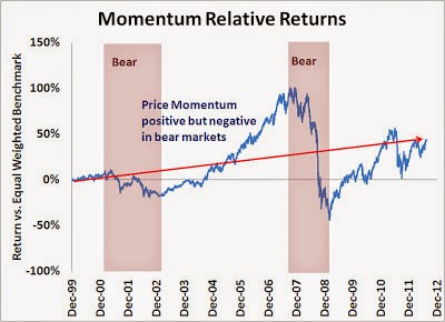 In the past, I had written about how combining factors can lead to more performance stability (see Momentum + Bull market = Chocolate + Peanut butter?). My past research showed that while price momentum did exhibit positive alpha over the course of a market cycle, returns were highly volatile.