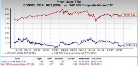 Right now, CONSOL Coal Resources has a P/S ratio of about 1.10. This is lower than the S&P 500 average, which comes in at 3.22 right now. Also, as we can see in the chart below, this is below the highs for this stock in particular over the past few years.