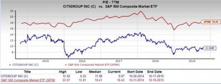 On this front, Citigroup has a trailing twelve months PE ratio of 9.87, as you can see in the chart below: