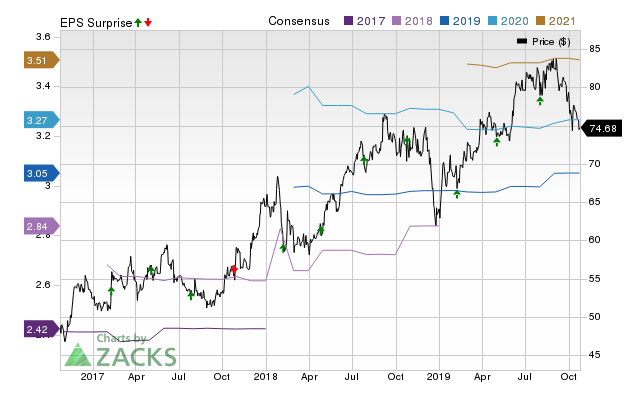 Dunkin' Brands (DNKN) is expected to deliver a year-over-year decline in earnings on higher revenues when it reports results for the quarter ended September 2019. This widely-known consensus outlook gives a good sense of the company's earnings picture, but how the actual results compare to these estimates is a powerful factor that could impact its near-term stock price.