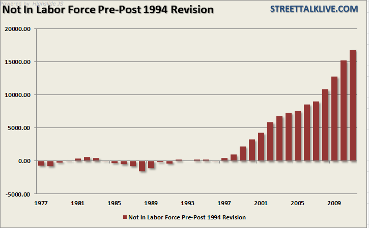 In 1994, under the Clinton Administration, the Bureau Of Labor Statistics (BLS) changed the methods in which it calculated the levels of unemployment in the U.S. While the changes appeared to be minor on the surface at the time -- the impact today is likely far greater than originally imagined. (for more detail on the changes read here)