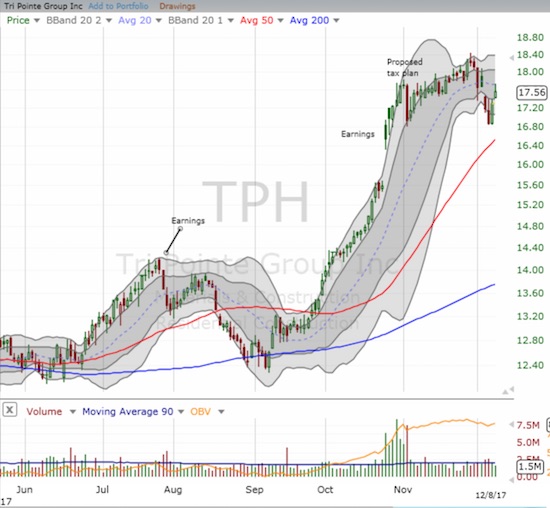 The sharp and impressive rally in Tri Pointe Group (TPH) came to a halt after angst over tax reform. A test of the 50DMA uptrend looms ahead.