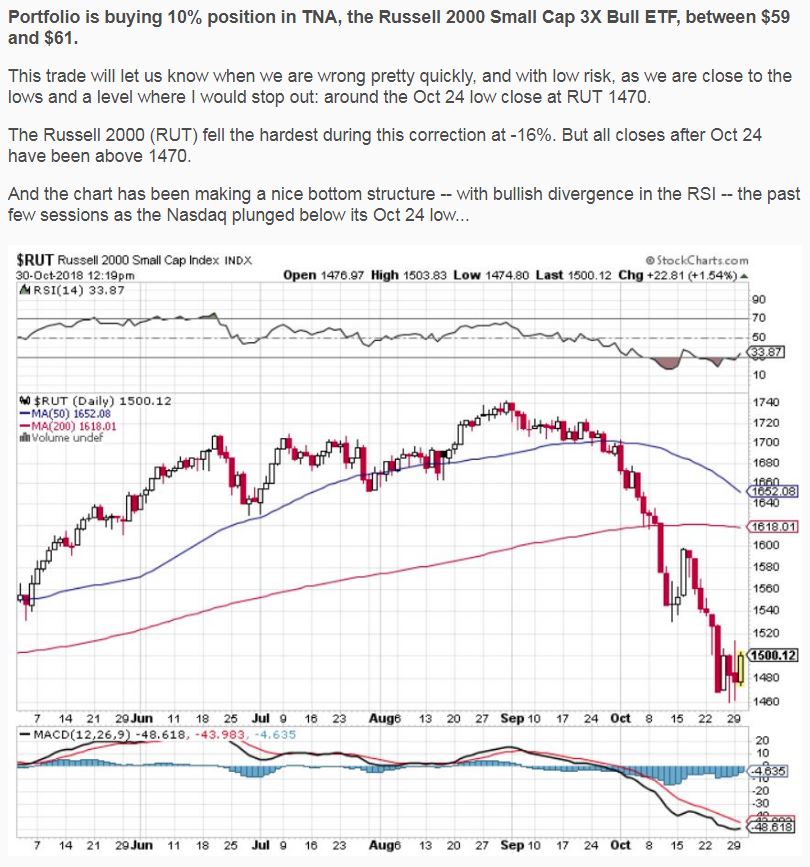 Here was the trade alert I gave my group Tuesday afternoon as the selling momentum subsided everywhere and we bought the Direxion Small Cap 3X Bull ETF (HM:TNA) ...