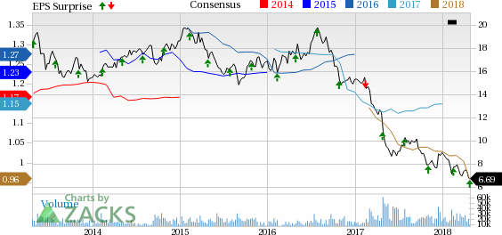 DDR Corp.’s (NYSE:DDR) first-quarter 2018 funds from operations (FFO) per share of 26 cents surpassed the Zacks Consensus Estimate of 23 cents. However, the figure declined a couple of cents from the prior-year quarter.