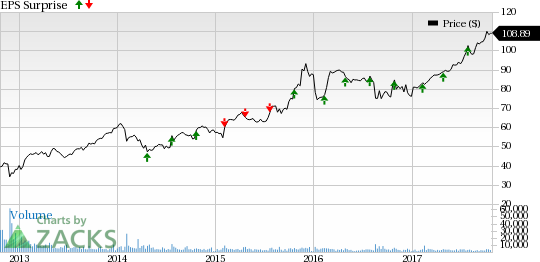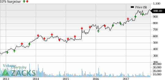 The Zacks Consensus Estimate for the company’s revenues is pegged at $21.94 billion for the quarter under review, up 20.1% from third-quarter 2016. Moreover, the Consensus Estimate for earnings is pegged at $8.39 per share and the stock has a Zacks Rank #3 (Hold).
