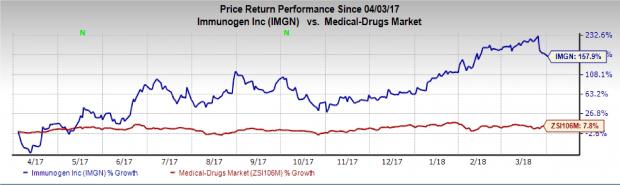Shares of ImmunoGen, Inc. (NASDAQ:IMGN) have shot up 157.9% in a year’s time, massively outperforming the industry’s 7.8% increase. Let’s analyze the factors that led to this skyrocketing rally.