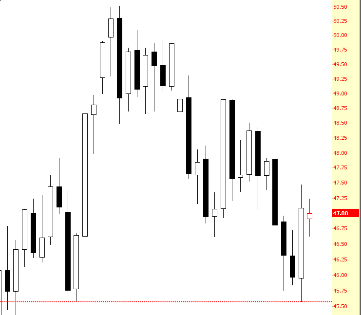 Crude oil’s downtrend is still cleanly in place, although we need to bust that support at 45.50 to get the next bearish boost.
