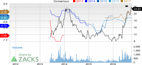 Over the last three months, the Zacks Consensus Estimate for fiscal 2016 narrowed by 24 cents, forecasting a loss of 46 cents.