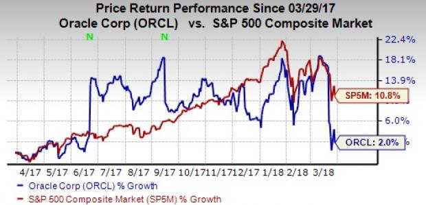 Shares of Oracle returned 2% in the past year, underperforming the S&P 500 index growth of 10.8%.