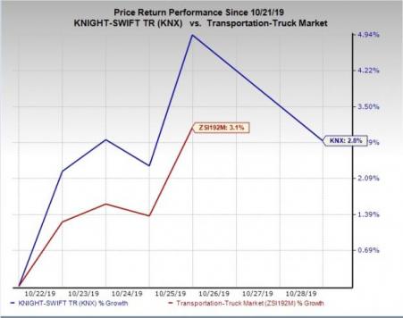 Knight-Swift’s recently released (on Oct 23) third-quarter earnings report bears evidence to this dismal picture. The company’s third-quarter earnings (excluding 4 cents from non-recurring items) of 48 cents were in line with the Zacks Consensus Estimate. However, the bottom line decreased 26.2% year over year. Total revenues of $1,200.5 million lagged the Zacks Consensus Estimate of $1,225.7 million and also declined 10.8% year over year.