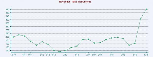 For fourth-quarter 2016, MKS Instruments projects to generate revenues within the range of $370–$410 million, against $172 million recorded in the year-ago quarter.