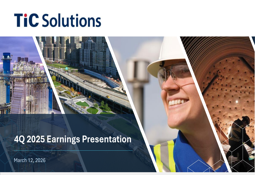 TIC Solutions, Inc. provides critical asset integrity services in North America. The company offers testing, inspection, certification, and compliance (TICC) services, including various nondestructive testing (NDT) techniques, such as radiography, ultrasonic testing, magnetic particle inspection, penetrant testing, and visual inspection. Its NDT activities include inspection and evaluation of industrial equipment through various technology-enabled methods to ensure asset integrity, prevent costly outages, failures, and accidents, and meet regulatory requirements without damaging the asset or component. It also provides market rope access technician solutions, including inspection and testing, as well as insulation, coatings and blasting, welding, pipe fitting, hoisting and rigging, and electrical services. In addition, its TICC services include support from consulting engineers with destructive testing, support failure investigation, material selection, corrosion engineering, welding engineering, fracture mechanics, destructive testing, and chemical analysis. Further, it offers geospatial services, such as data collection, data analytics, and software solutions that support asset management and infrastructure planning. The company serves a range of industrial markets, such as chemical, pipeline, refinery, power generation, oilsands, automotive, aerospace, mining, manufacturing, renewable energy, and pulp and paper. TIC Solutions, Inc. was formerly known as Acuren Corporation and changed its name to TIC Solutions, Inc. in October 2025. The company was founded in 1974 and is headquartered in Hollywood, Florida.