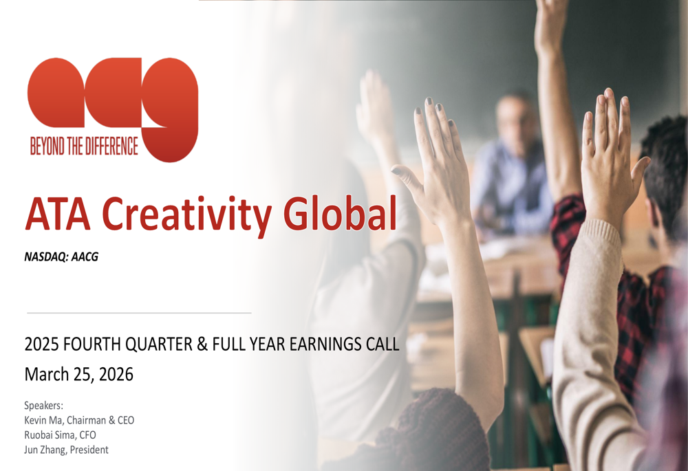 ATA Creativity Global, together with its subsidiaries, provides educational services in China and internationally. The company offers portfolio training services, research-based learning services, overseas study counselling services, in-school art classes through cooperation with high schools and training organizations, junior art education, and other educational services to students. It also provides online courses for students. The company provides its services through partnership with sales channels, internet and mobile advertisement, word of mouth referral, and marketing events and activities. The company was formerly known as ATA Inc. and changed its name to ATA Creativity Global in September 2019. ATA Creativity Global was founded in 1999 and is based in Hefei, China.