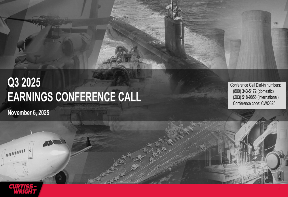 Curtiss-Wright Corporation, together with its subsidiaries, provides engineered products, solutions, and services mainly to aerospace and defense, commercial power, process, and industrial markets worldwide. It operates through three segments: Aerospace & Industrial, Defense Electronics, and Naval & Power. The Aerospace & Industrial segment offers industrial and specialty vehicle products, such as power management electronics, traction inverters, transmission shifters, and control systems; sensors, controls, and electro-mechanical actuation components used on commercial and military aircraft; and surface technology services including shot peening, laser peening, and engineered coatings. The Defense Electronics segment provides commercial off-the-shelf embedded computing board-level modules and processing equipment, data acquisition and flight test instrumentation equipment, integrated subsystems, instrumentation and control systems, tactical communications solutions; and electronic stabilization products, and weapons handling systems; avionics and electronics; flight test equipment; and aircraft data management solutions. The Naval & Power segment offers main coolant pumps, power-dense compact motors, generators, steam turbines, valves, and secondary propulsion systems; energy absorbers, retractable hook cable systems, net-stanchion systems and mobile systems to support fixed land-based arresting systems; hardware, valves, fastening systems, specialized containment doors, airlock hatches, and spent fuel management products; reactor coolant pumps and control rod drive mechanisms for commercial nuclear power plants, as well as various nuclear reactor technologies. This segment furnishes severe-service valve technologies and services, heat exchanger repair, and piping test and isolation products, and offers ship repair and maintenance for the U.S. navy. Curtiss-Wright Corporation was incorporated in 1929 and is headquartered in Davidson, North Carolina.