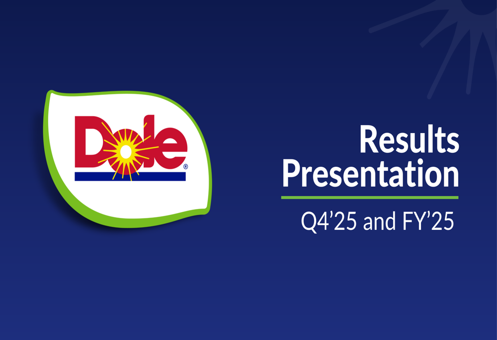 Dole plc engages in sourcing, production, distribution, and marketing of fresh fruits and vegetables worldwide. It operates through three segments: Fresh Fruit; Diversified Fresh Produce - EMEA; and Diversified Fresh Produce - Americas and ROW. The company offers bananas, pineapples, and plantains; avocados, kiwis, apples, berries, and cherries; and imported and local fresh fruits and vegetables through retail, wholesale, e-commerce, and food service channels. It is also involved in the commercial cargo business. The company offers its products under the DOLE brand. It serves grocery stores, wholesalers, mass merchandisers, supercenters, foodservice operators, club stores, convenience stores, distributors, and smaller regional customers. Dole plc was incorporated in 2017 and is headquartered in Dublin, Ireland.