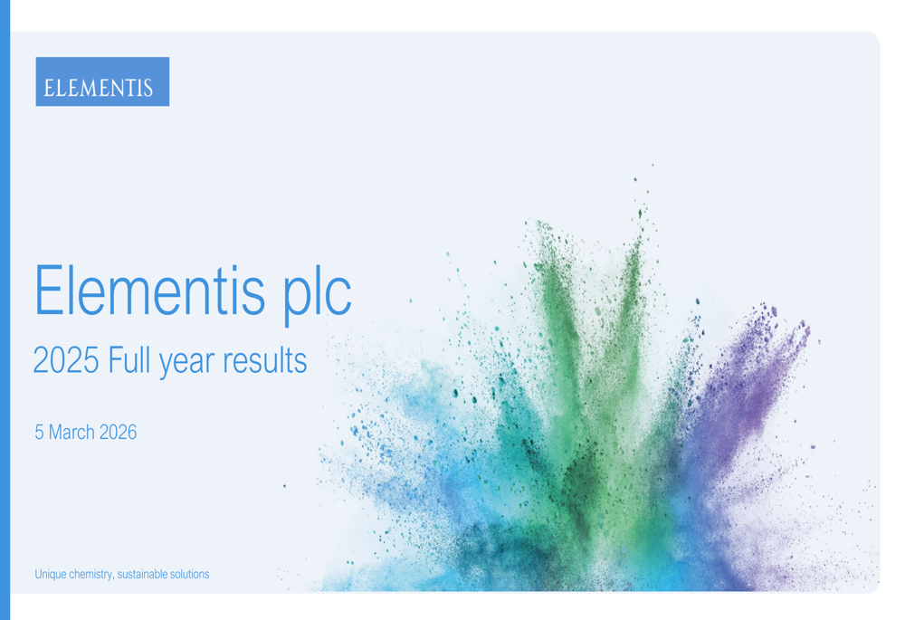 Elementis plc operates as a specialty chemical company in the United Kingdom, rest of Europe, North America, and internationally. It operates in two segments, Performance Specialties and Personal Care. The Performance Specialties segment engages in the production of rheological modifiers and additives for decorative and industrial coatings; and production and supply of talc for use in plastics, coatings, technical ceramics, and paper sectors. This segment provides products for applications in architectural and industrial coatings, adhesives, and sealants and construction additives. The Personal Care segment offers rheological modifiers and compounded products, including active ingredients for antiperspirants (AP) deodorants for personal care manufacturers. This segment offers products for applications in antiperspirants, skin care, and color cosmetics. Elementis plc was founded in 1844 and is headquartered in London, the United Kingdom.