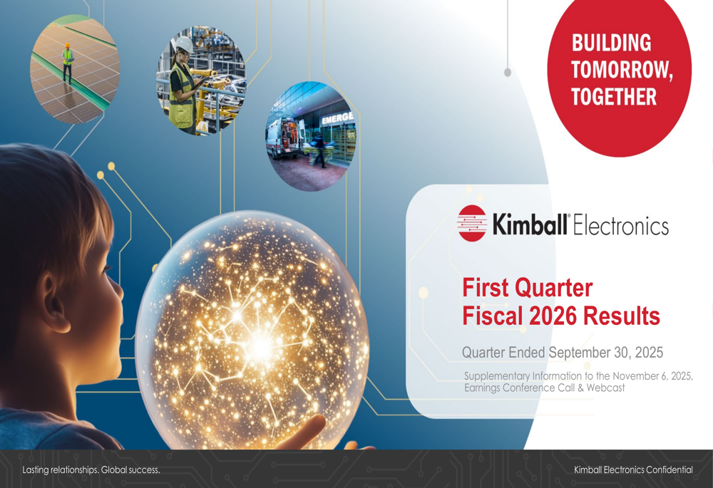 Kimball Electronics, Inc. provides electronics, assemblies, and contract manufacturing organization solutions. The company offers electronics manufacturing services, including engineering and supply chain support to customers in the automotive, medical, and industrial end markets, as well as contract manufacturing organization solutions comprising the production of medical disposables and drug delivery services, such as precision molded plastics, cold chain management, and drug integration. It also engages in the production and testing of printed circuit board assemblies; assembly of medical, automotive, and industrial products; and clean room assembly, cold chain, and product sterilization management activities. In addition, the company offers design services and support, supply chain services and support, rapid prototyping and new product introduction support, product design and process validation and qualification, industrialization and automation of manufacturing processes, reliability testing, aftermarket services, and product life cycle management services. It operates in the United States, China, Mexico, Poland, Romania, Thailand, India, Japan, Vietnam, and internationally. Kimball Electronics, Inc. was founded in 1961 and is headquartered in Jasper, Indiana.