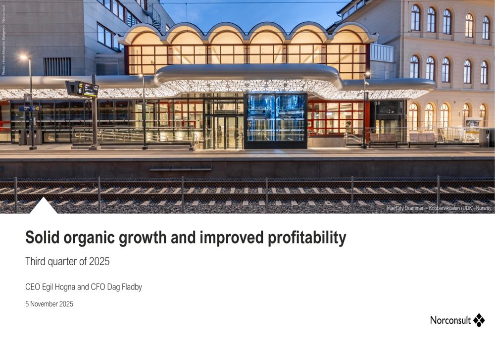 Norconsult ASA provides consultancy services with focus on community planning, engineering design, and architecture in the Nordics and internationally. The company offers consultancy services for the planning and engineering design of construction and real estate projects, such as residential, office, and industrial buildings; hospitals, healthcare buildings, and care homes; schools and educational buildings; sports facilities; cultural buildings; laboratory buildings, terminal buildings for airports and railway stations; and fire and police stations. It also provides infrastructure services for water, geoscience and environment, and transport industries. In addition, the company offers construction engineering, execution, and land acquisition services for renewable energy industry; and consultancy, project development, engineering design, and execution of various construction, renovation and modification projects with industrial installations. Further, it provides IT consulting services and solutions for project management, infrastructure, and property, as well as recruitment and staffing services. The company was founded in 1929 and is headquartered in Sandvika, Norway.