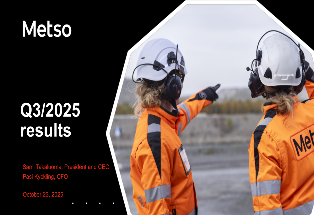 Metso Oyj provides technologies, end-to-end solutions, and services for the aggregates, minerals processing, and metals refining industries in Europe, North and Central America, South America, the Asia Pacific, Greater China, Africa, the Middle East, and India. It operates in two segments, Aggregates and Minerals. The company provides various equipment, parts, and services for contractors, aggregates quarries, manufacturing sand, slag recycling, and construction and demolition waste recycling; mobile equipment; and stationary equipment, such as crushers, screens, crushing and screening plants, conveyors, chutes, feeders, and air classifiers. It also offers loading and hauling, crushing, conveying, screening, grinding, floatation, magnetic separation, filtration, material handling, slurry handling, thickening and clarifying, hydrometallurgy, in-pit crush and convey, tailing management, digital twins, and automation services. In addition, the company provides spare and wear parts, including haul truck liners, crusher spares and wears, conveyor parts, screen/feeder spares, screening media, mill liners and spares, floatation and filtration parts, stacker reclaimers parts, apron feeder parts, slurry pumps parts, thickener parts, and wear lining products. Further, it offers life cycle, maintenance and repairs, modernizations and upgrades, process optimization, and training services. The company was formerly known as Metso Outotec Oyj. Metso Oyj was incorporated in 1990 and is headquartered in Espoo, Finland.