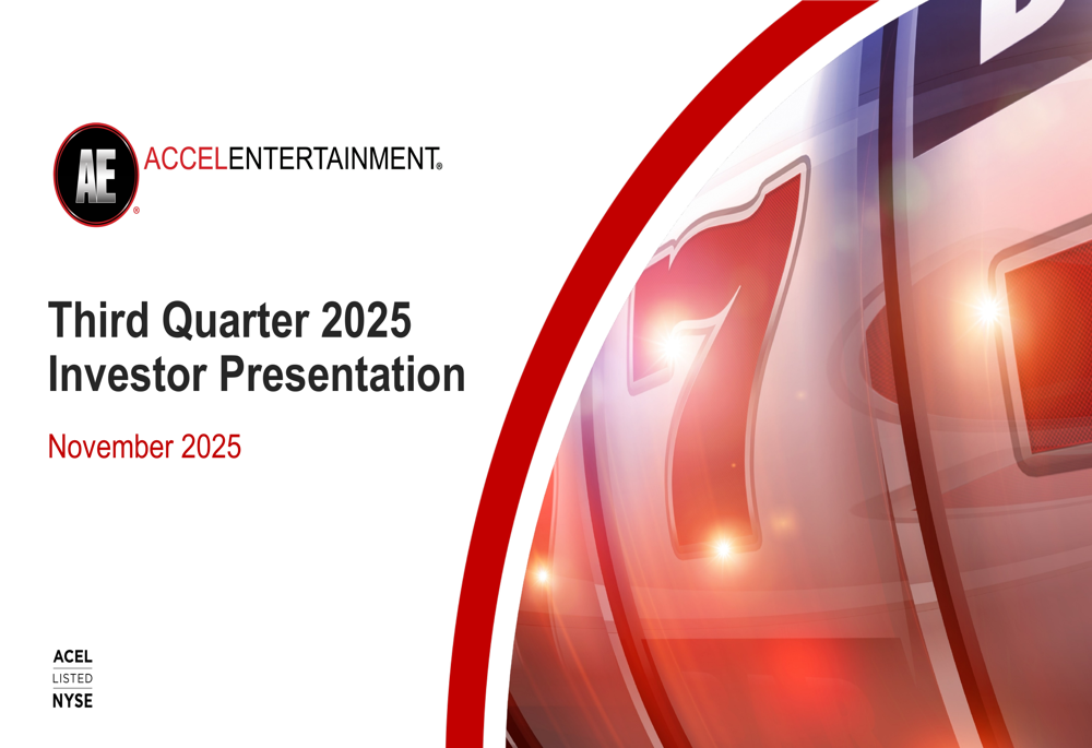 Accel Entertainment, Inc., together with its subsidiaries, operates as a distributed gaming and local entertainment operator in the United States. It engages in the installation, maintenance, and operation of gaming terminals; redemption devices that disburse winnings and contain automated teller machine (ATM) functionality; and other amusement devices in authorized non-casino locations, such as restaurants, bars, taverns, convenience stores, liquor stores, truck stops, and grocery stores. The company also designs and manufactures gaming terminals and related equipment, as well as offers turnkey and full-service gaming solutions to bars, restaurants, convenience stores, truck stops, and fraternal and veteran establishments. In addition, it operates casionos; and stand-alone ATMs in gaming and non-gaming locations, as well as amusement devices, including jukeboxes, dartboards, pool tables, and other entertainment related equipment. The company is headquartered in Burr Ridge, Illinois.