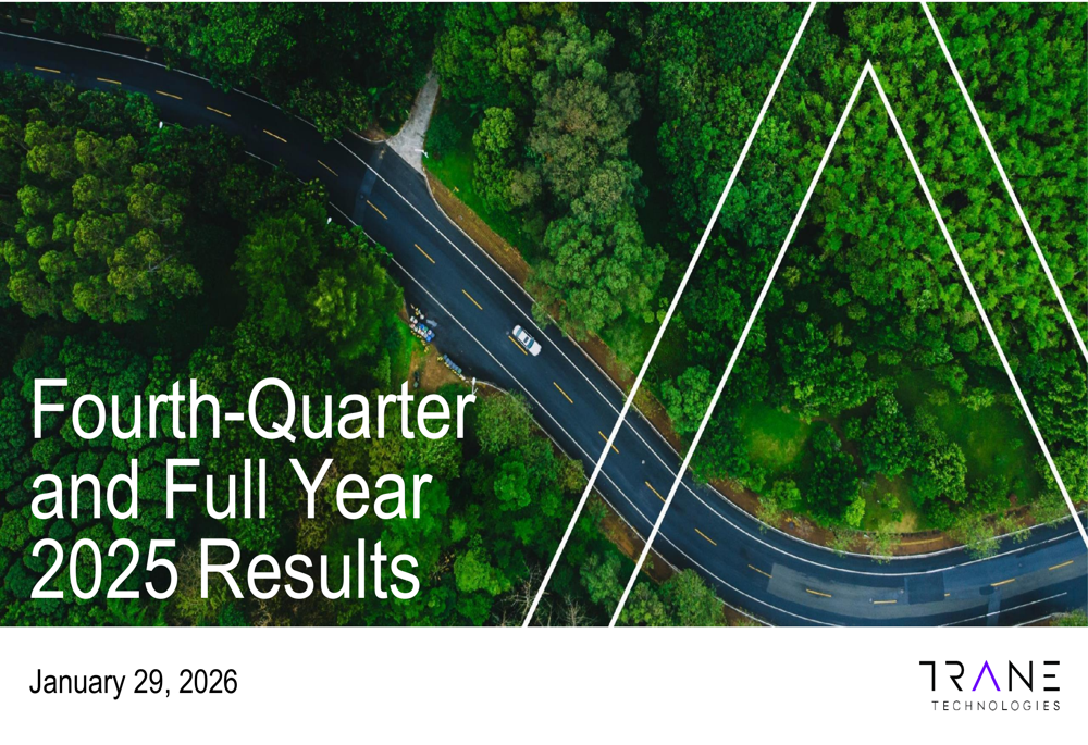 Trane Technologies plc designs, manufactures, sells, and services of solutions for heating, ventilation, air conditioning, and custom and transport refrigeration. It offers air conditioners, exchangers, and handlers; airside and terminal devices; air sourced heat pumps; chillers; coils and condensers; auxiliary power, cold storage, and condensing units; controls contracting and commissioning, decarbonization programs, and gensets; dehumidifiers; energy and water efficiency programs; energy recovery ventilators and power solutions; energy storage; furnaces; home automation; humidifiers; HVAC performance-monitoring products; and indoor air quality assessments and related products for HVAC and transport solutions. The company also provides asset management, building management, bus air purification, bus and rail HVAC, container refrigeration, control, ductless, geothermal, data center and multi-pipe HVAC, package heating and cooling, rail refrigeration, residential air filtration, self and vehicle powered truck refrigeration, temporary heating and cooling, truck refrigeration, unitary, variable refrigerant flow, and trailer refrigeration systems. In addition, it offers industrial process refrigeration, installation contracting, lighting retrofit, medical grade refrigeration, refrigerant reclamation, renewable energy and storage, residential hybrid heating, telematics, thermostats/controls and associated digital, ventilation, and stationary cold storage solutions; packaged rooftop units; rate chambers; residential air filters; thermal energy storage; transport heater products; temperature freezers; energy infrastructure programs and management, repair and maintenance, smart and AI-enabled, and rental services; water source heat pumps; and aftermarket and OEM parts and supplies. The company was formerly known as Ingersoll-Rand Plc and changed its name to Trane Technologies plc in March 2020. The company was founded in 1885 and is headquartered in Swords, Ireland.