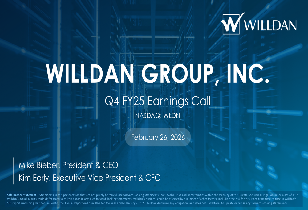 Willdan Group, Inc., together with its subsidiaries, provides professional, technical, and consulting services through engineering, program management, policy advisory, and software and data analytics primarily in the United States. The company operates in two segments: Energy, and Engineering and Consulting. The Energy segment offers comprehensive audit and surveys, program design and implementation, master planning, demand reduction, grid optimization, benchmarking analyses, design engineering, AI data center power solutions, construction management, performance contracting, installation, alternative financing, measurement and verification services, and software and data analytics, as well as energy consulting and engineering, turnkey facility and infrastructure projects, and customer support services. The Engineering and Consulting segment provides building and safety, city engineering and code enforcement, development review, disaster recovery, geotechnical, earthquake, planning and surveying, contract staff support, program and construction management, structures, transportation and traffic engineering, and water resources services. This segment also offers district administration, financial consulting, and federal compliance services. It serves investor and municipal owned energy utilities, public and governmental agencies, including cities, counties, redevelopment agencies, water districts, school districts, and universities; state and federal agencies; and commercial and industrial firms, as well as various other special districts and agencies. Willdan Group, Inc. was founded in 1964 and is headquartered in Anaheim, California.