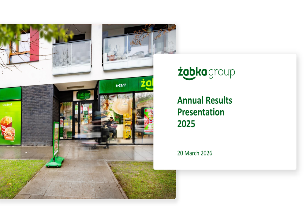 Zabka Group S.A. operates as an ultimate convenience ecosystem in Poland. The company operates convenience retail stores and Zabka Nano Stores, an autonomous store. It also provides digital offering solutions, including Maczfit, a direct-to-consumer (D2C) meal solution; Dietly, an online D2C meal solutions marketplace.; and eGrocery and e-commerce services under the Zappka, delio and Zabka Jush brands. In addition, the company franchises retail stores; and engages in the IT consultancy related activities, real estate construction, warehousing and storage of goods, rental and management of own or leased real estate, and sale of merchandise. Further, it is involved in the retail sale of tobacco products in specialised stores; production and distribution of ready meals; software related activities connected with catering platform; transport of goods; distribution of FMCG products; and other activities supporting financial services. It sells its products through physical convenience stores and online. The company was founded in 1998 and is headquartered in Luxembourg, Luxembourg.